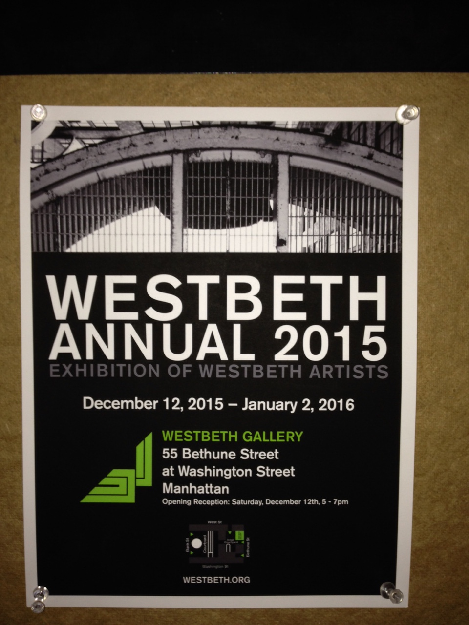 The 2015 Westbeth Annual features an eclectic group of art from paintings and drawings to photography and sculpture. It’s an opportunity to see work from both well-known artists and those who are still trying to make a name for themselves. Many of the pieces are for sale. Westbeth is not too far from the Whitney Museum and the neighborhood is charming. The exhibit is on view until January 2nd and the gallery is open Wednesday – Sunday from 1pm – 6pm. It’s closed Christmas weekend and New Years Day.