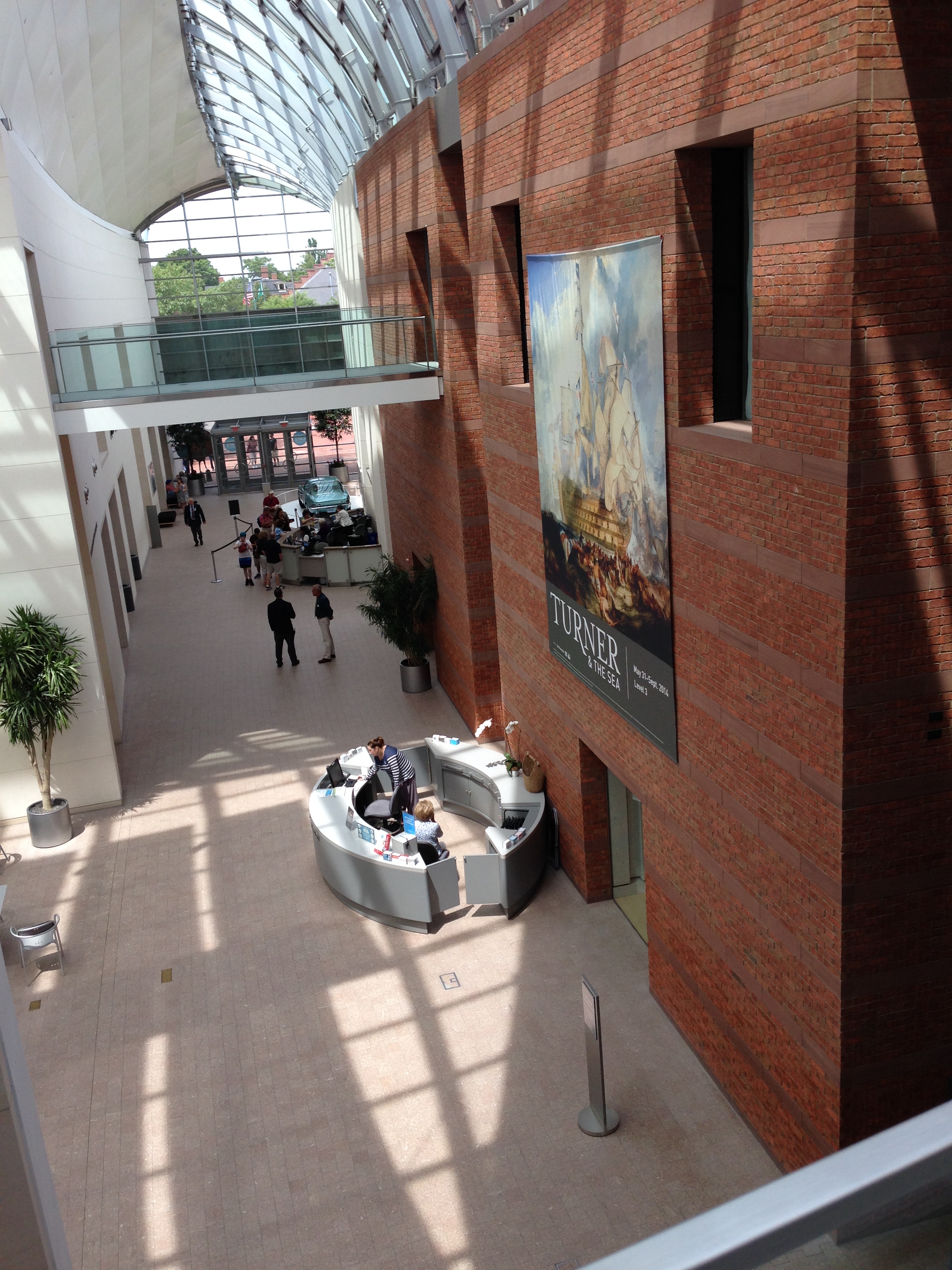 Sublime: The Prints of J.M. W. Turner and Thomas Moran can be found along the hallway on the third floor. Between 1807-1819 Turner published his Liber Studiorum (Book of Studies). It’s a series of landscapes evoking a sense of the “Sublime,” a term philosopher Edmund Burke defined as “whatever is fitted…to excite ideas of pain or danger.” American painter and printmaker, Thomas Moran was inspired by Turner’s work. Shown at different ends of the hall, the exhibition provides an interesting comparison between the “British and American artists’ often complementary and sometimes divergent views of nature,” states the exhibition catalog.